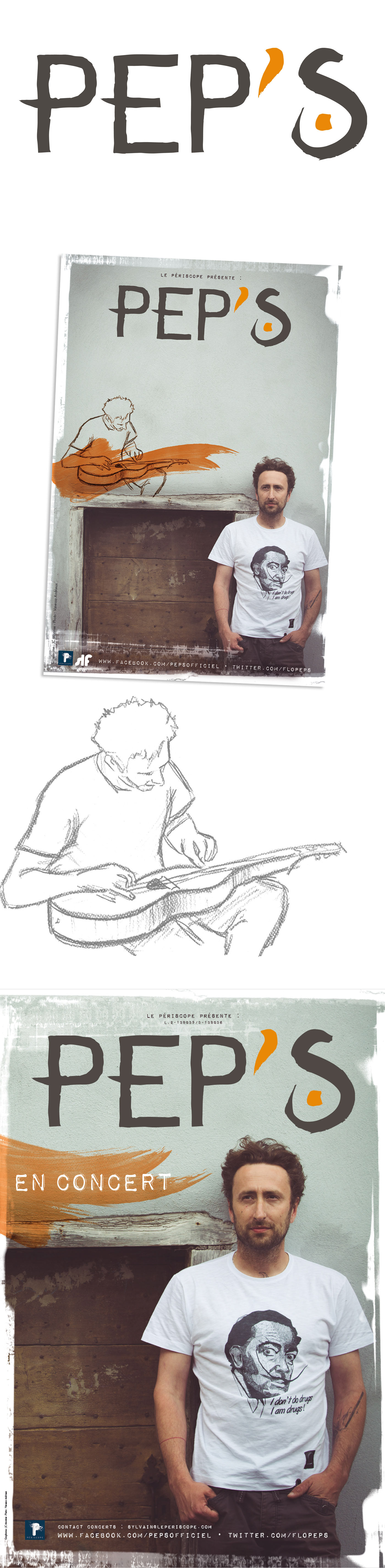 Pour la tournée du chanteur Pep's, création du logo et de son univers graphique (affiche, carton de dédicaces, FB, etc).